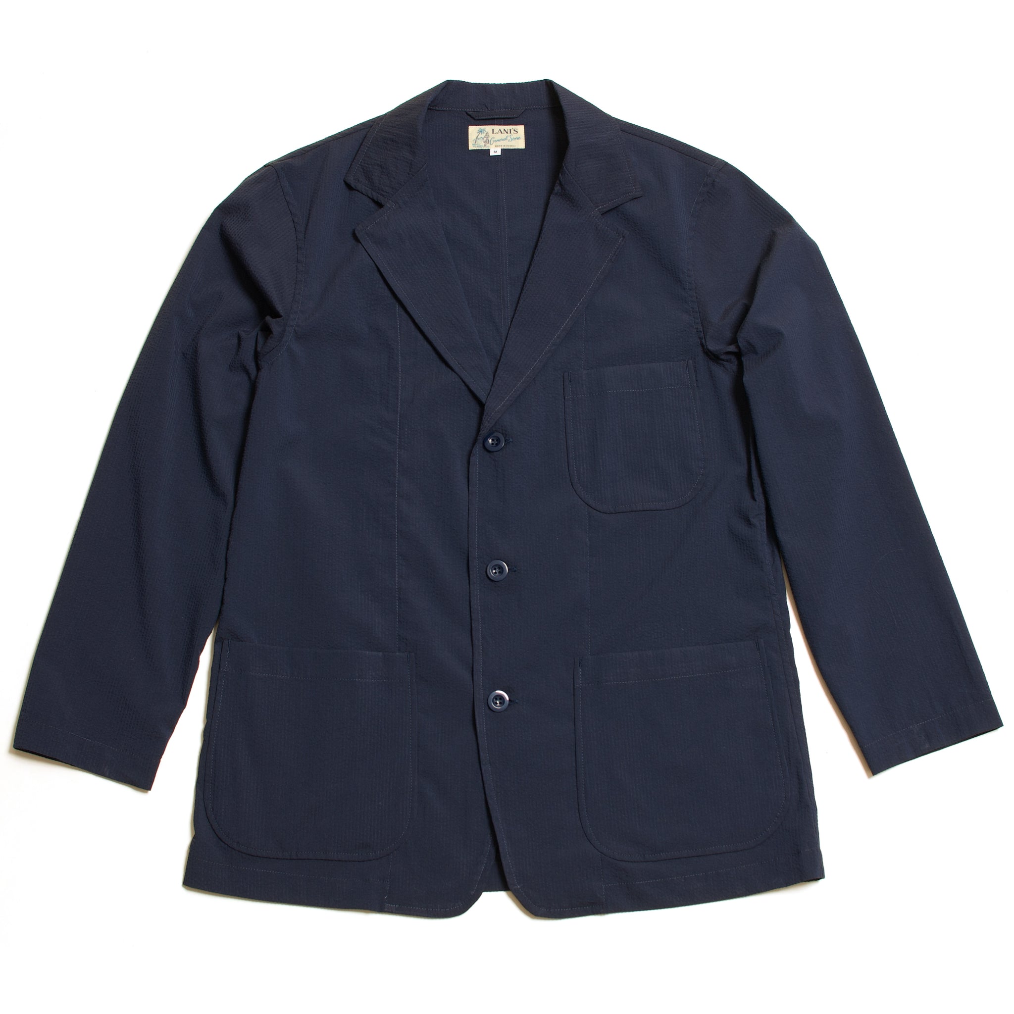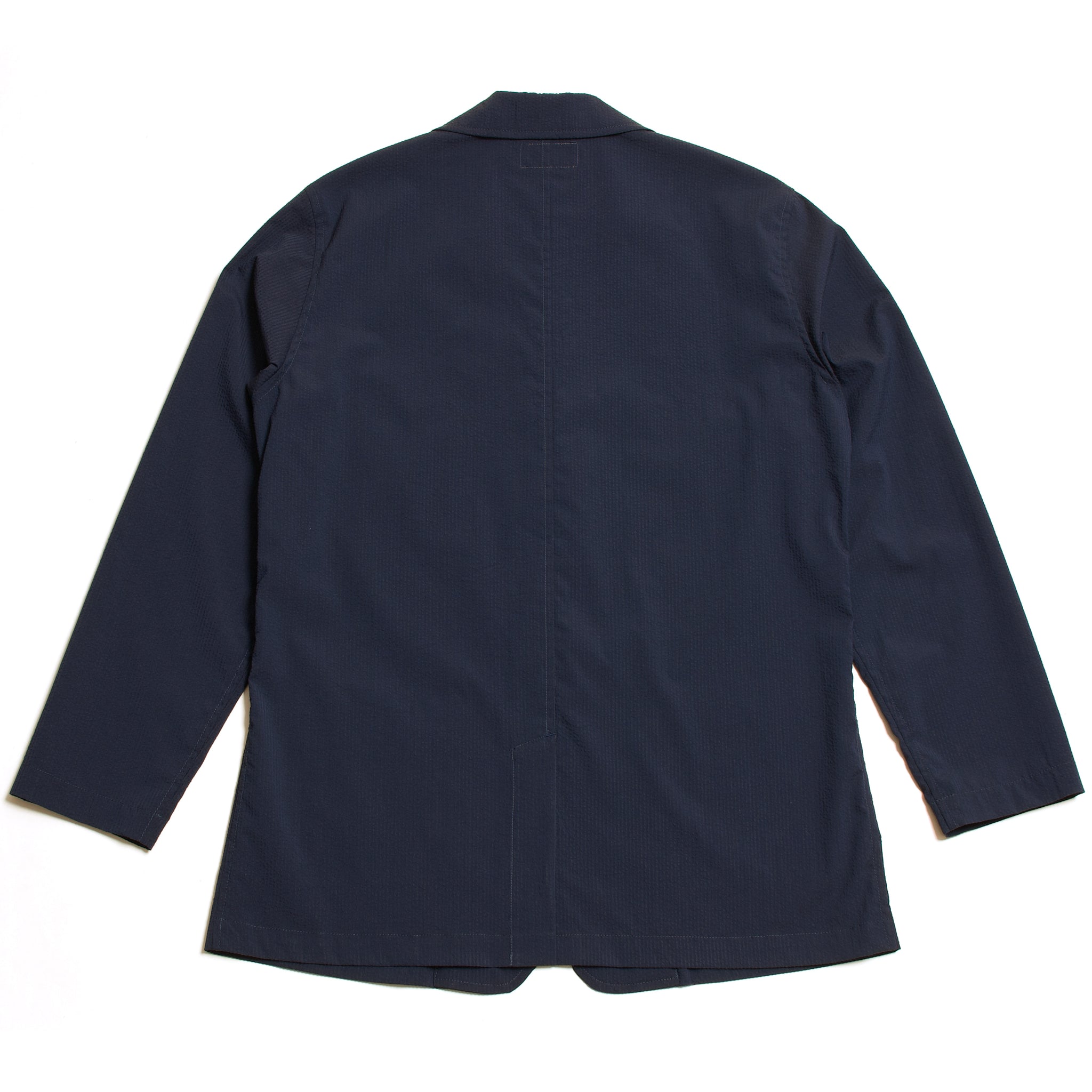 Featuring clean inset pockets for a minimal appearance and a center vent at the back for ease of movement, this jacket balances comfort with subtle structure. The seersucker fabric provides excellent airflow and an easy-care feel, making it ideal for warm climates and everyday wear.