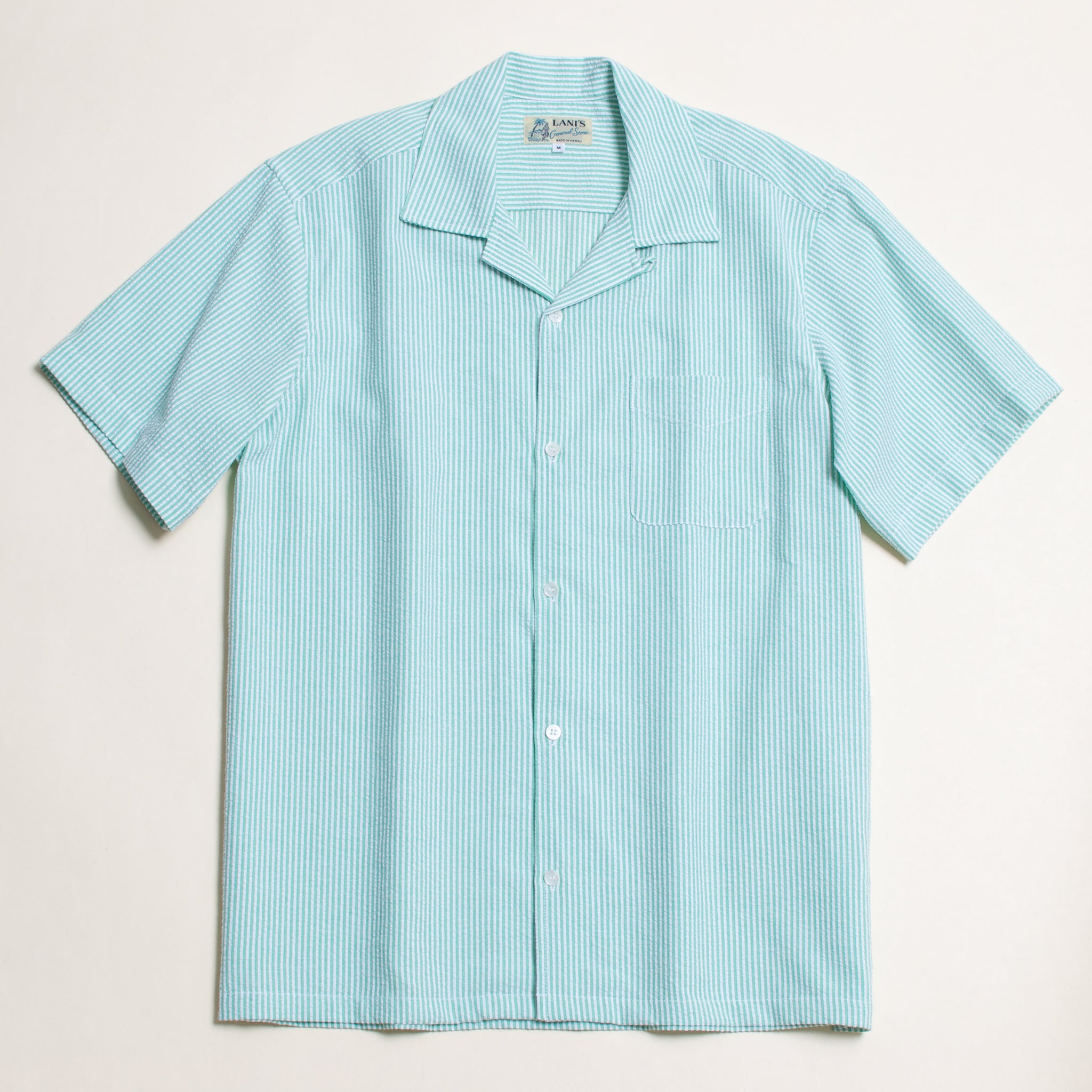 This open-collared shirt is made from lightweight seersucker fabric, offering a comfortable feel with excellent breathability.