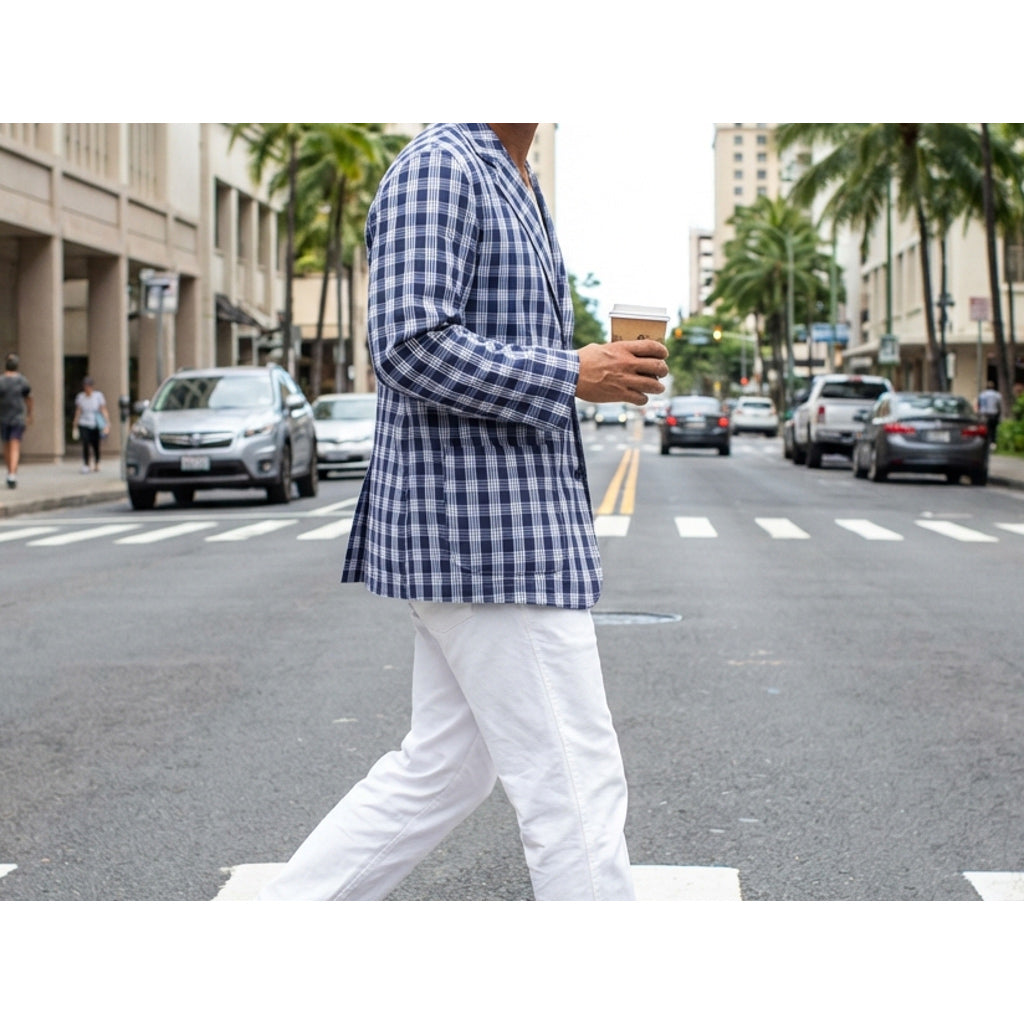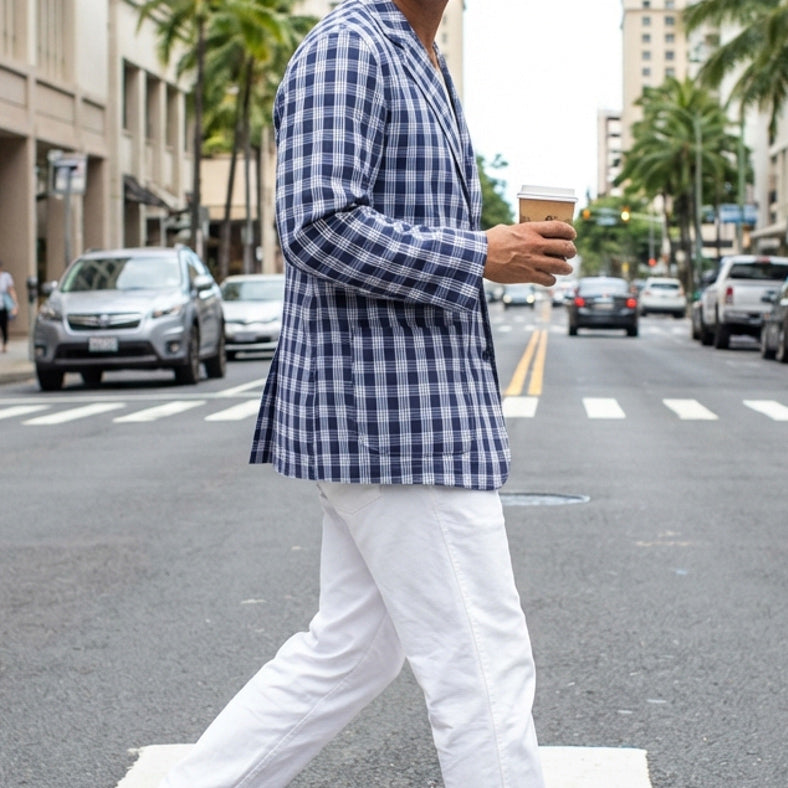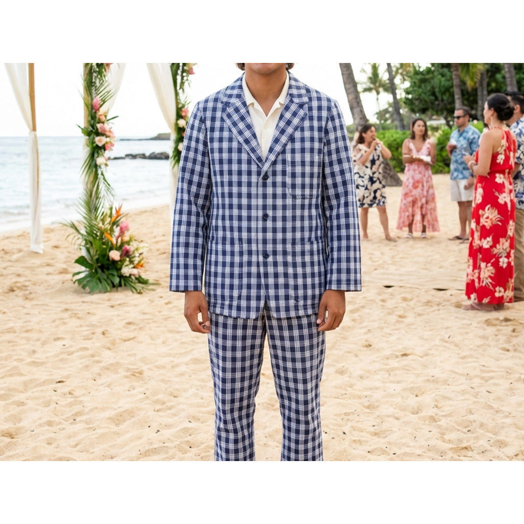 The Palaka Loafer Jacket is a relaxed interpretation of a classic tailored jacket, crafted from traditional Hawaiian Palaka fabric. Designed with a three-button front, it offers a timeless silhouette that feels both casual and refined.