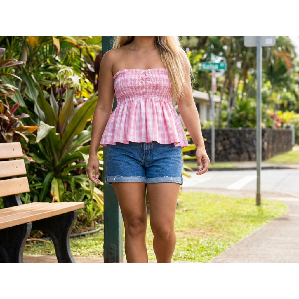 Made from traditional Palaka fabric, this smocked top features a flattering fit with soft gathers and stretchy shirring.